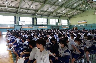生徒総会は、各委員会の代表生徒が全校生徒に対して、予算案や委員会活動方針などの様々な議題について説明し、意見交換を行う行事です。