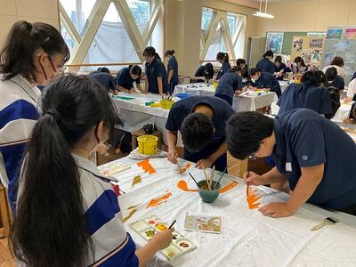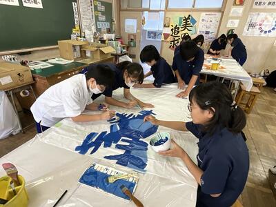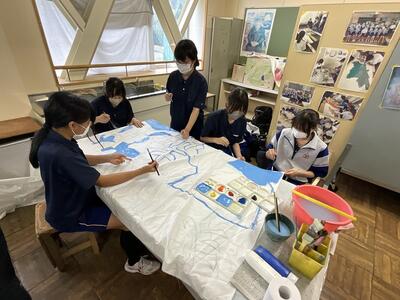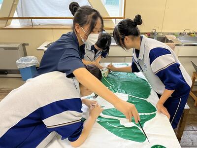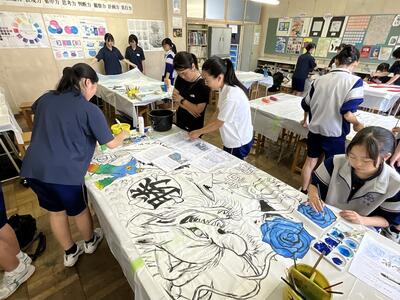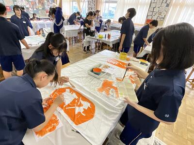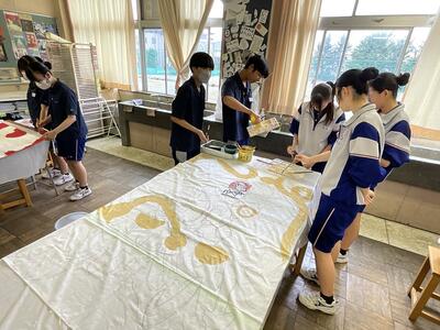 7月16日、応援旗の作成を行いました。絵具を使って力強い応援旗を作り上げる姿はとても活気に満ちていました。